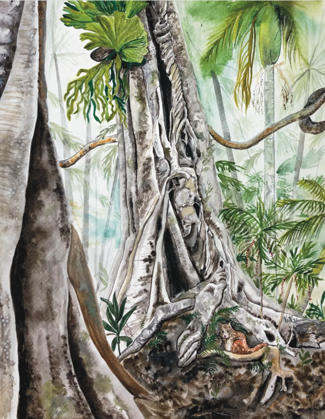 A self-taught watercolour artist and Illustrator with a background in graphic design, surrounded by the Australian native bush on a property called Forest Farm, her family have been restoring and protecting the land they call home.